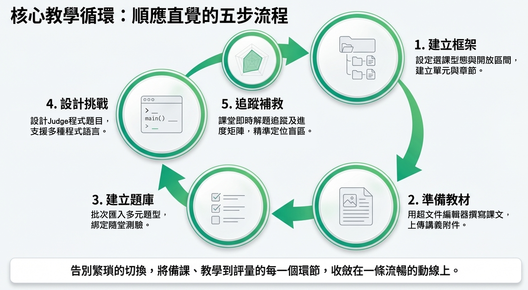 • 綠色圓點: 代表此章節包含「隨堂小測驗」。